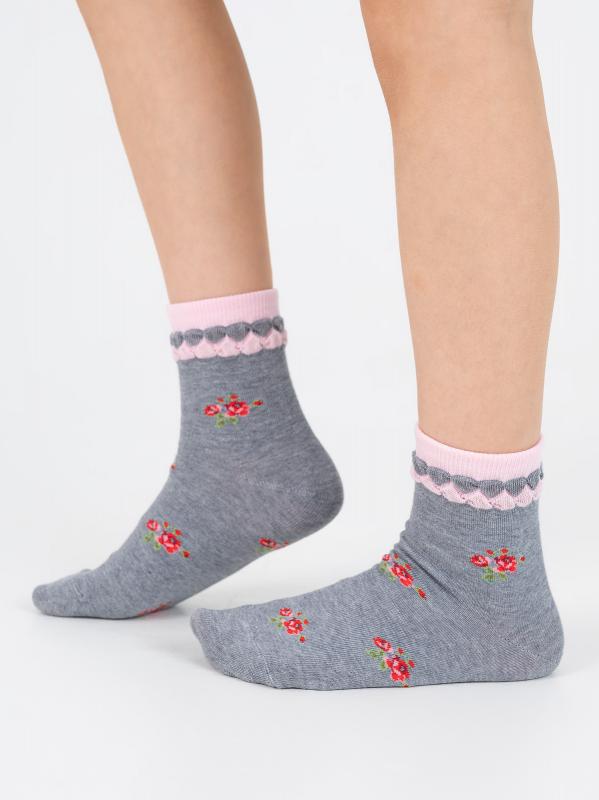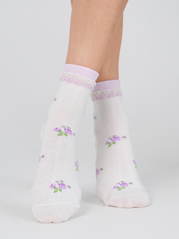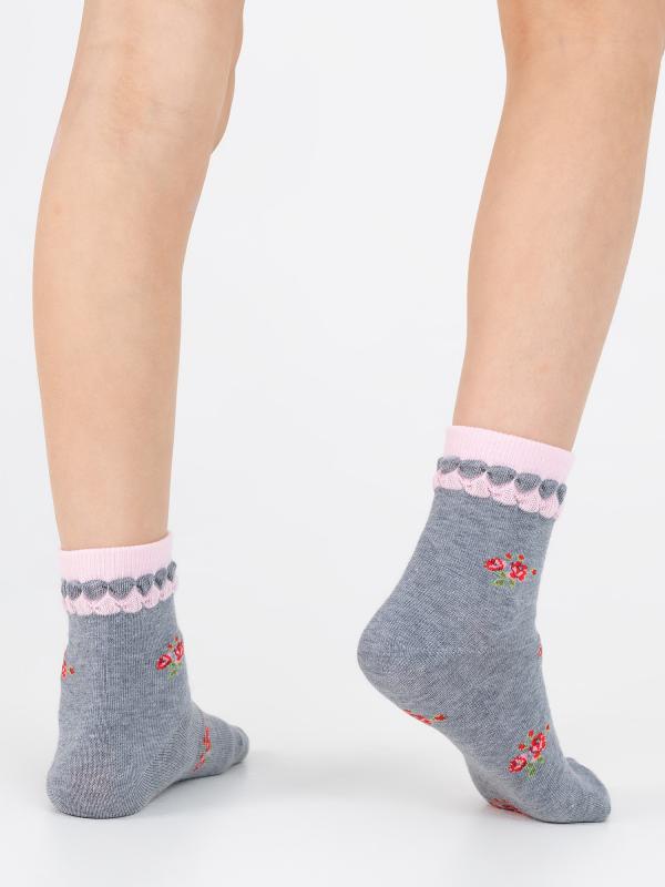 Изящные демисезонные носки для девочек. Натуральный состав изделия гарантирует комфорт и уют на протяжении дня, при этом защищая нежную кожу ребенка от раздражений. Утонченный борт и прелестный цветочный рисунок оценит каждая маленькая модница.