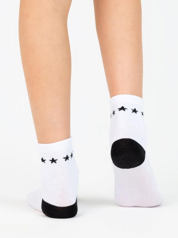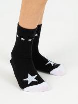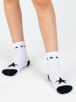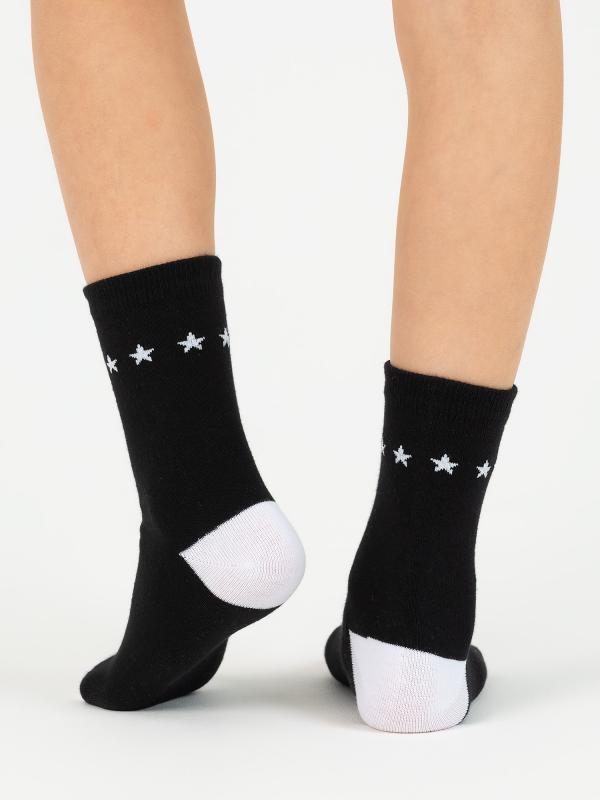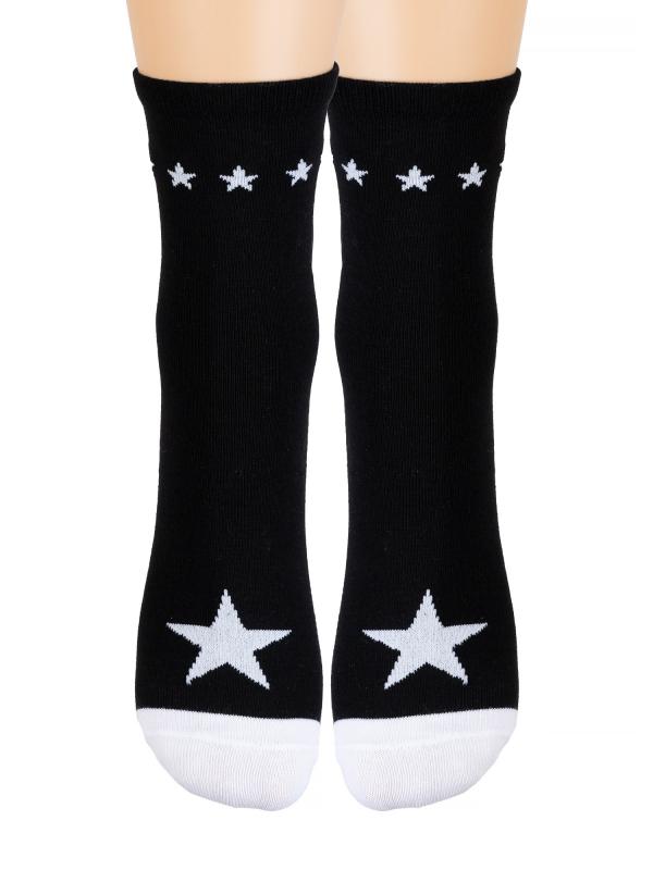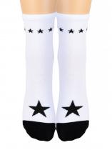 Стильные детские носки. Связаны из натурального гребенного хлопка. Материал отличается своим удобством и комфортом, он мягок, прост в уходе и хорошо пропускает воздух. Гармоничное сочетание белого и чёрного позволит комбинировать носки с любым детским образом, а рисунок звёзд поднимет настроение вашему ребенку.