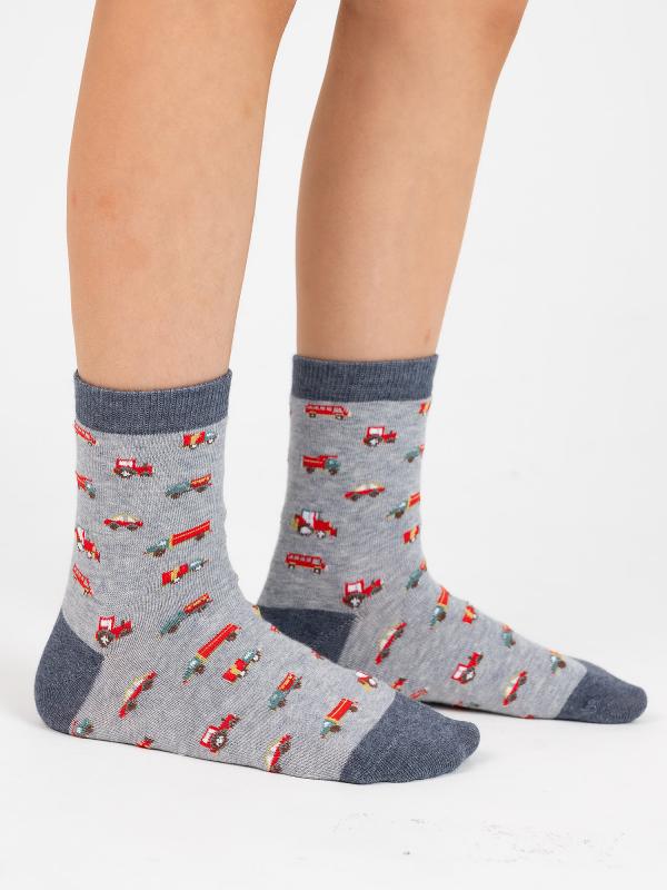 Популярная модель детских демисезонных носочков с изображением различных машин - грузовиков, тракторов и автобусов. Рисунок задаёт настроение и придётся по вкусу каждому мальчишке. Носочки в лаконичных цветах созданы для базового детского гардероба. Комфортный натуральный состав из высококачественного гребенного хлопка позволяет ножкам дышать на протяжении всего дня.