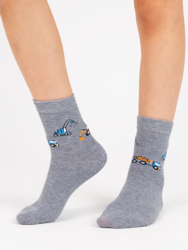 Детские демисезонные носки. Мягкая модель, связанная из натурального гребенного хлопка, обладает воздухопроницаемостью и гигроскопичностью - находка для детских ножек. Носки со строительной техникой оценят мальчишки и с удовольствием будут их надевать, на радость родителям.