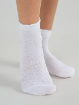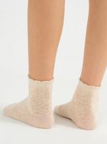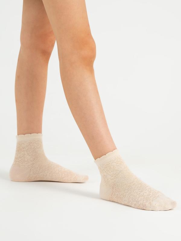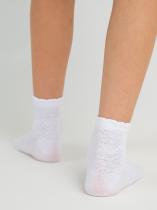 Невероятно нежные детские носочки, связанные по технологии обратной платировки. Главные достоинства этого переплетения - узор с имитацией ажура и усиленная прочность изделия. В основе пряжи высококачественный гребенной хлопок, за счёт чего ножкам комфортно на протяжении дня. Эстетики добавляет элегантный фигурный борт. Носочки подойдут утончённым девочкам и гармонично дополнят праздничный образ.