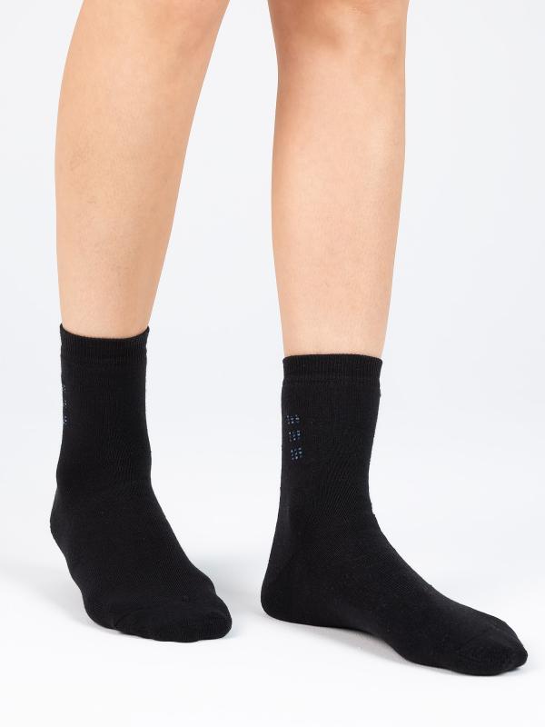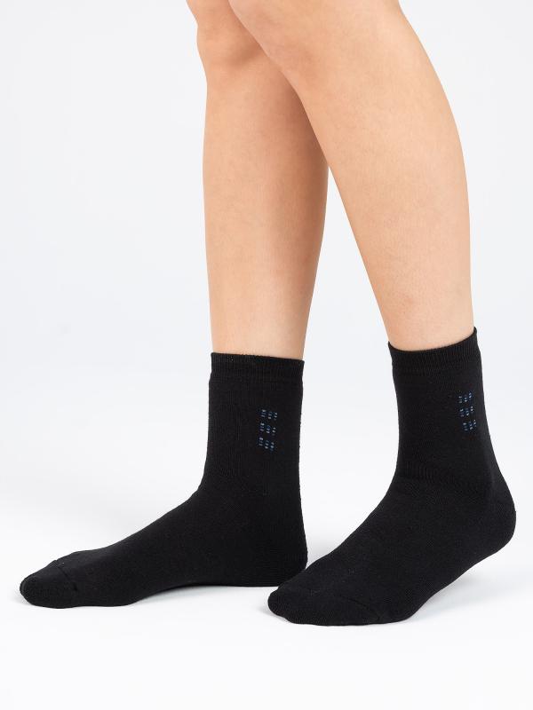 Классические черные детские махровые носки, которые необходимо иметь в каждом гардеробе. Лаконичный дизайн в виде оранжево-коричневых квадратиков на паголенке украшает эту модель. Носочки на 87% состоят из натурального хлопка, а значит в них ребенку будет тепло и комфортно. Данный материал также отлично впитывает влагу, поэтому ноги не преют.