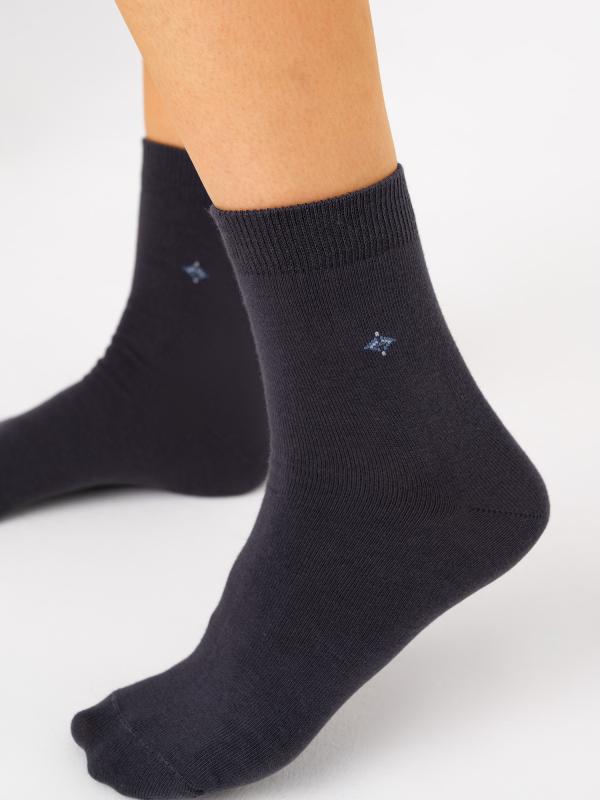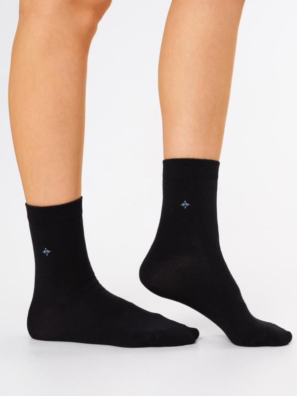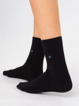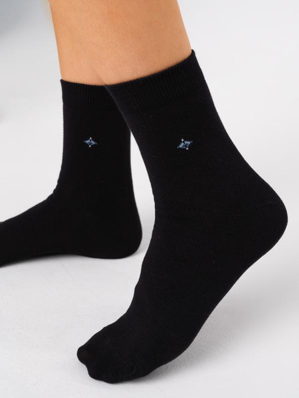 Детские носки в классическом стиле. Модель из натурального гребенного хлопка не теряет форму, хорошо тянется и плотно облегает стопу ребенка, обеспечивая максимальный комфорт на протяжении всего дня. Универсальный чёрный цвет позволит сочетать носочки с любой одеждой и обувью.