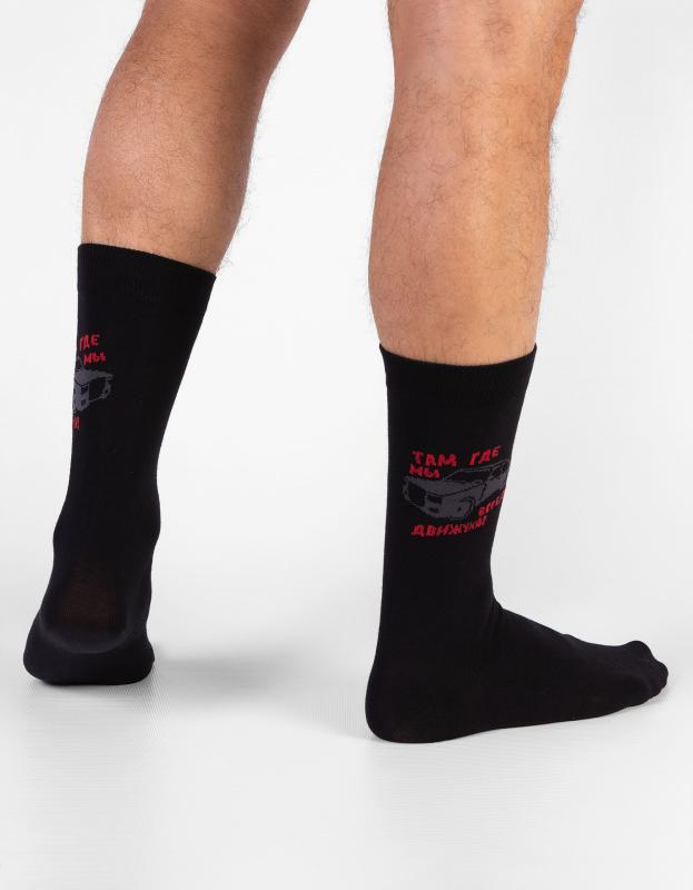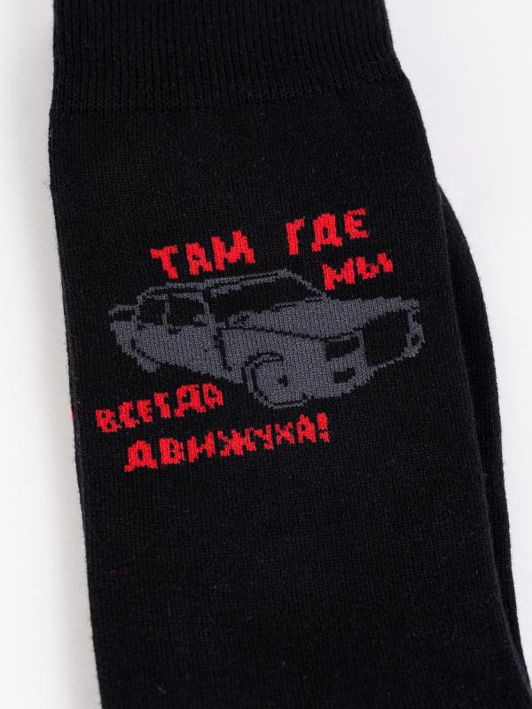 Демисезонные мужские носки классической длины. Изделие связано из натурального гребенного хлопка – такие носки мягкие, гигроскопичные, воздухопроницаемые. Модель с рисунком машины можно приобрести в качестве дополнения к подарку.