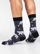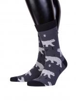 Модель демисезонных мужских носков с рисунком белых медведей. Изделие связано из натурального гребенного хлопка и подходит для повседневной носки. Модель станет отличным дополнением к подарку и поднимет настроение вашим близким.