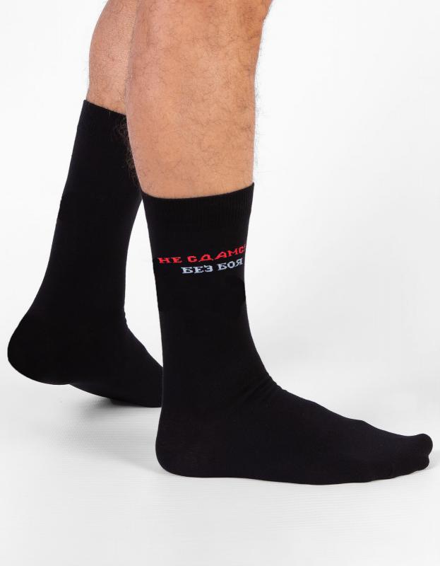 Мужские демисезонные носки. Классчическая модель связана из натурального гребенного хлопка, благодаря этому, подходит для повседневной носки. Минималистичная надпись добавляет носку характера.