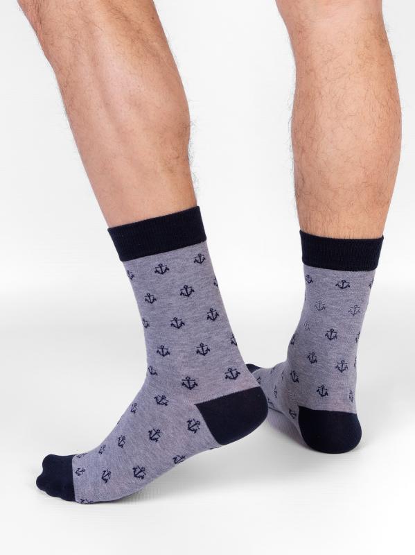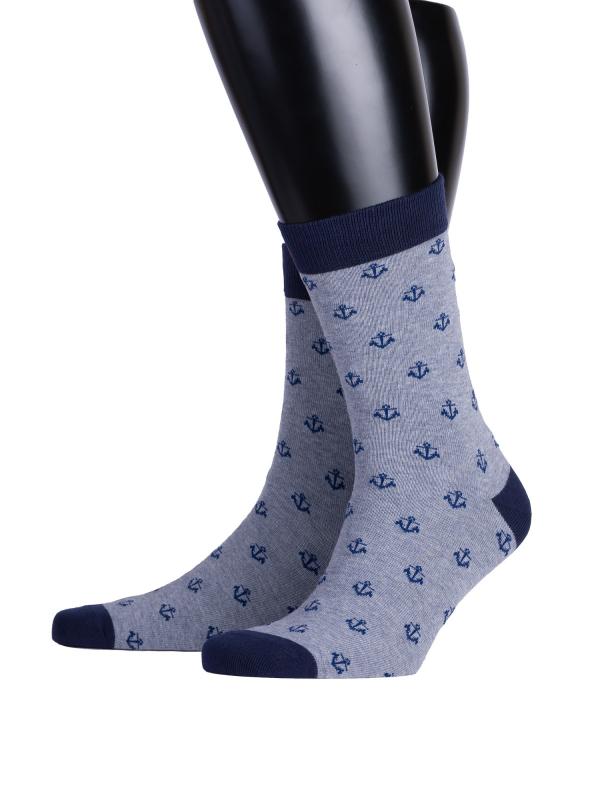 Демисезонные мужские носки с рисунком якоря. Изделие из натурального гребенного хлопка и подходит для повседневной носки. Модель связана в стиле минимализм в приятных пастельных цветах, сочетающихся между собой. Носки станут прекрасным дополнением к образу.