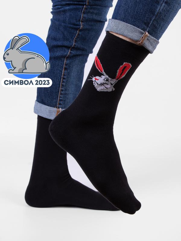 Мужские зимние носки с рисунком зайца. Модель связана из натурального гребенного хлопка и подходит для повседневной носки. Теплые носки классической длины согреют зимними вечерами и станут отличным дополнением к подарку.