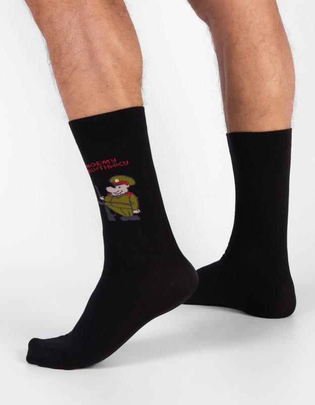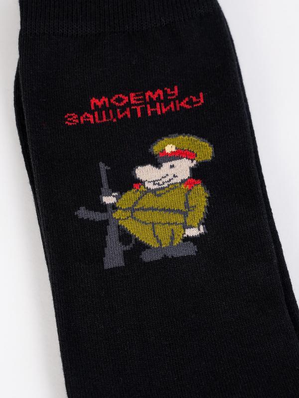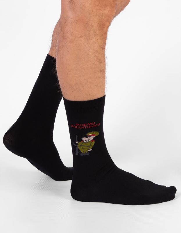 Демисезонные мужские носки с рисунком «Моему Защитнику». Изделие связано из натурального гребенного хлопка, комфортное, гигроскопичное и воздухопроницаемое. Классическая модель с рисунком станут отличным дополнением к подарку для вашего мужчины.