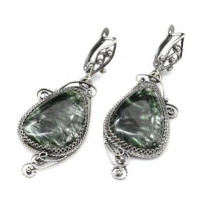 Серьги серафинит 22*42мм.