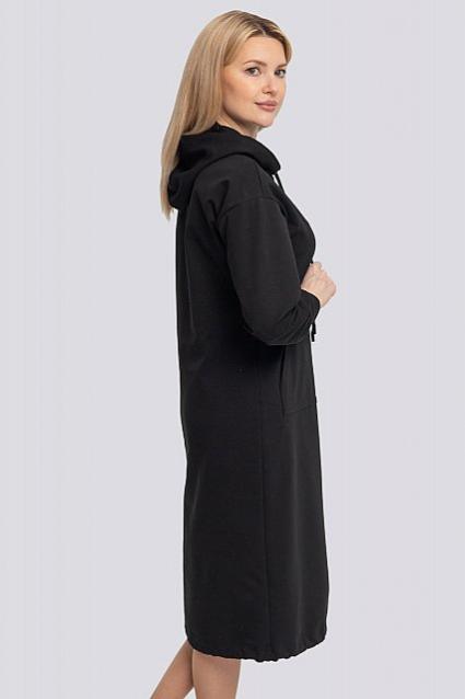 Женское платье в стиле спорт-шик актуально как никогда. Платье подарит Вам удобство, стиль, комфорт и практичность. Крой платья аккуратно сглаживает недостатки фигуры и стройнит ее. Платье прямого, свободного кроя, спущенная линия плеча. По низу рукава манжета, по переду накладной карман. Капюшон со шнурком, также по низу изделия регулируемый шнурок. По левому боку разрез. Состав трикотажа: 75% хлопок, 20% полиэстер, 5% спандекс.