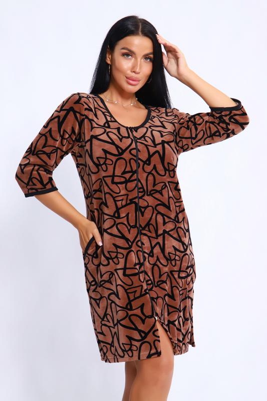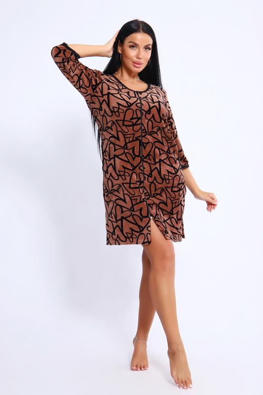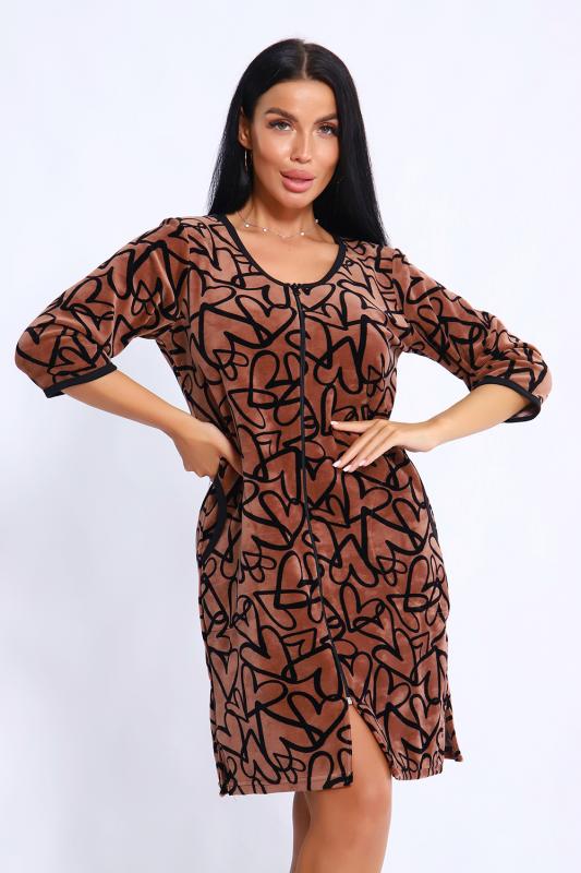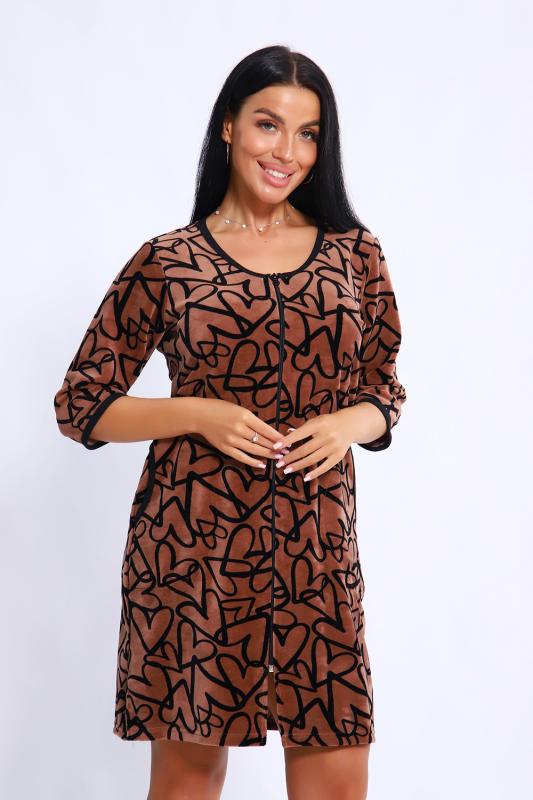 Женский укороченный халатик выполнен из качественного велюра и модного дизайна. Велюр практичен, прост в уходе и использовании. Обладает высокой устойчивостью к механическим повреждениям. Ему свойственны характеристики натуральных тканей, что делает его использование комфортным. Материал гигроскопичен, хорошо пропускает воздух и сохраняет тепло. Кроме этого он не меняет форму и не вызывает аллергических реакций. Отличается мягкостью и приятной на ощупь текстурой. Материал прекрасно дышит. Носить тако
