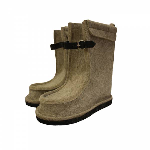2. ПОЛУВАЛЕШИ - модель со средней высотой голенища (чуть ниже середины голени). Выпускается на войлочной подошве и подошве из пористой резины. Материал: грубошерстный и тонкошерстный войлоки в некрашеном и крашеном вариантах. Могут оснащаться фурнитурой для затягивания голенища.