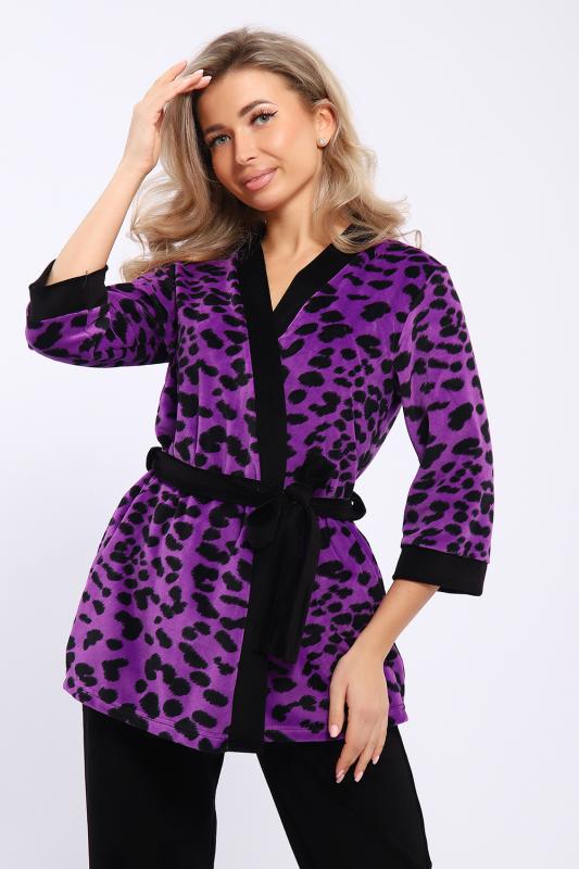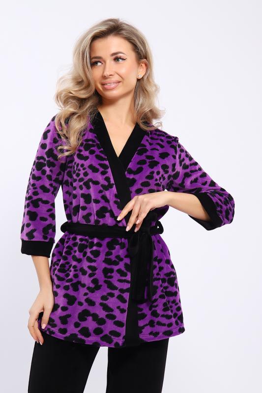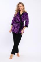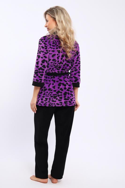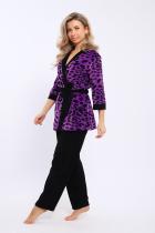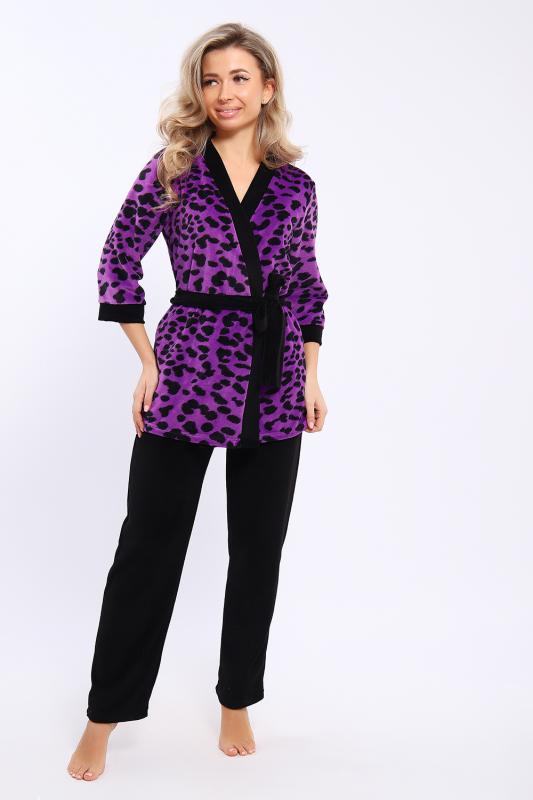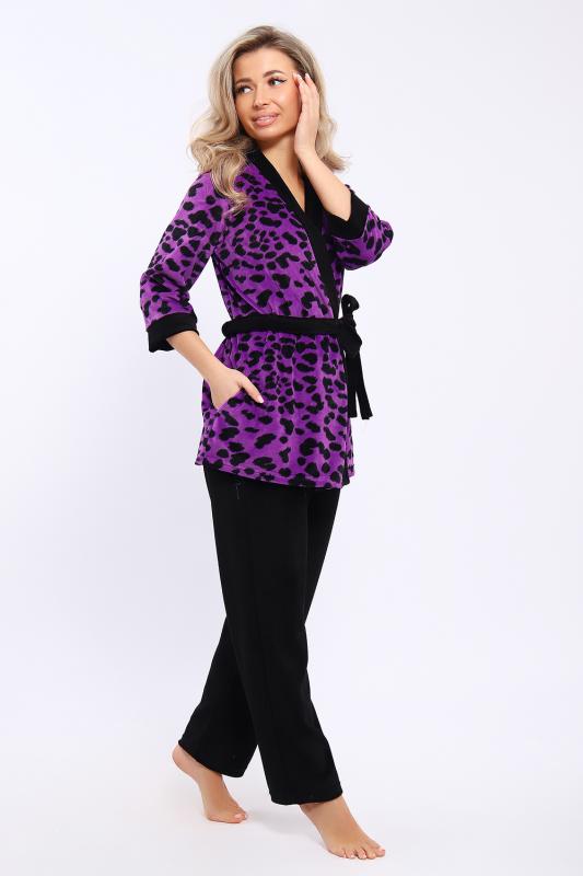 Домашний костюм состоит из укороченного халата и брюк. Брюки с карманами. Халат запашной на поясе. Рукава длиной 3-4 с манжетами. Карманы в боковых швах.