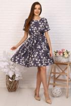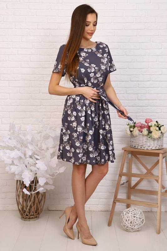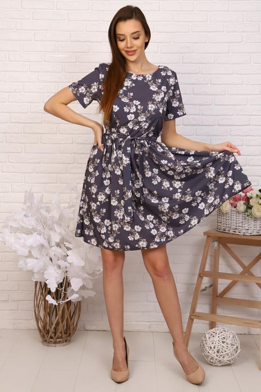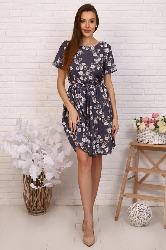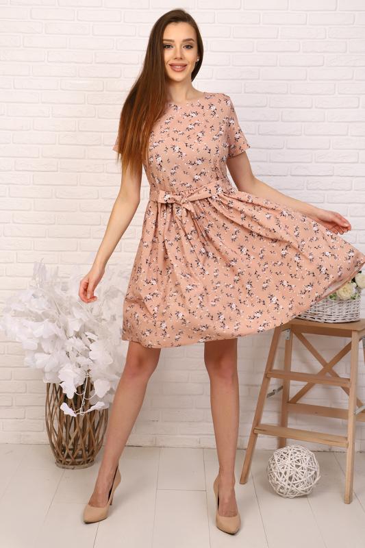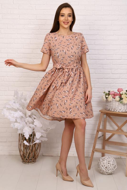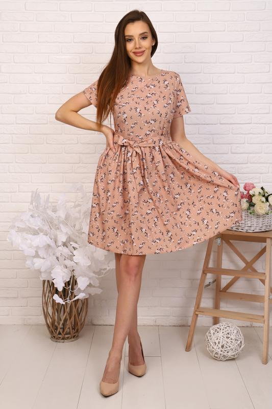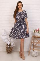 Платье приталенного силуэта с широкой юбкой, отрезное по талии с тканевым поясом, эффектно подчеркивает линию талии. Мелкая сборка по линии талии придают юбке пышность. Круглый вырез горловины. Втачные укороченные рукава, на спине застежка-молния. Идеальный выбор для стильного гардероба. Прекрасно подойдет для работы в офисе и для романтической встречи.