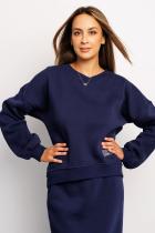 Бренд Raposa предлагает Вашему вниманию однотонный свитшот женский в стиле кэжуал, который станет незаменимой удобной и комфортной вещью в гардеробе современной модницы. Качественный плотный хлопковый футер 3 нитка ткань с начесом подарит Вам уют, мягкость и тепло в холодные осенние и зимние дни. Горловина и манжеты толстовки с длинными рукавами и спущенным плечом выполнены из ткани «кашкорсе», держит форму и не растягивается. Свободный крой будет удобен как кофта для беременных, а прекрасные дамы плюс сайз по достоинству оценят большие размеры, имеющиеся в наличии. Удлиненный силуэт сзади визуально делает фигуру более утонченной и стройной. Темно-синяя кофта в стиле спо