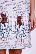 Стильное платье из купонного трикотажа повседневного назначения. Прилегающий силуэт подчёркивает пластику фигуры, платье длинной чуть выше колена, с широким вырезом горловины с резинкой переходящей на окат рукава. Такое решение позволяет спускать и поднимать рукав для моделирования формы.