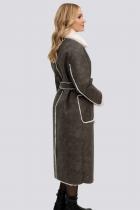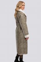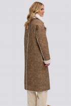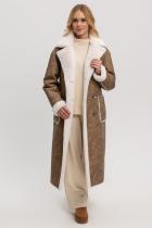 Экомех и экокожа очень актуальны, они сохраняют тепло и не трескаются на морозе, не промокают и не пропускают ветер.Объем изделия свободный, силуэт прямой, не сковывает движения. Спущенное плечо обеспечивает хорошую мягкую посадку на фигуру любого типа. Застежка на двойной ряд пуговиц – практичная и удобная, воротник отложной с лацканами может застегиваться до верха. Низ рукава отгибается на манжет. Удобные накладные карманы позволяют насладиться каждым прикосновением к невероятно мягкому меху. Цветовая гамма верхней поверхности отлично сочетается с мехом молочного оттенка, который освежает модель. Дубленка - универсальный вариант для теплой зимы и холодной осени. Температурный режим до -15.