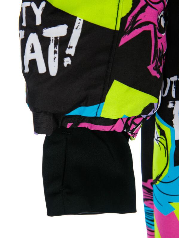 Мембранный материал делает этот яркий и модный комбинезон непромокаемым: мембрана не пропускает влагу снаружи, но выводит её изнутри, что крайне важно во время подвижных игр и занятий спортом.