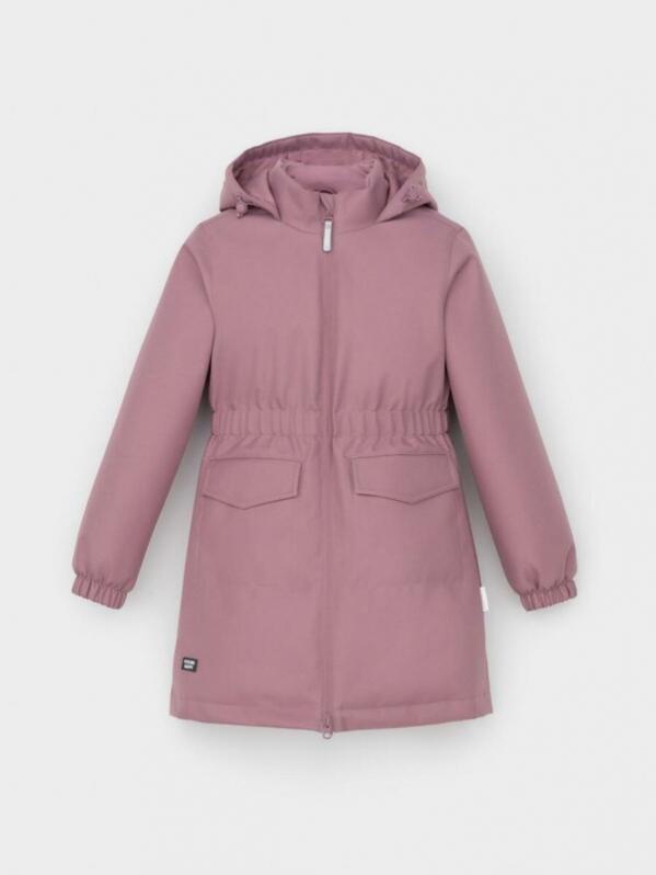 Демисезонное пальто для девочки с утеплителем SEE®: 120 г-м2. Выполнено из мембранной ткани с дополнительной тефлоновой обработкой. Данный вид обработки предохраняет изделие от загрязнения и лучше отводит влагу. Подклад из 100% полиэстера. У изделия предусмотрена защита подбородка. Несъемный капюшон имеет утягивающий шнур со стопперами. Низ рукавов и пояс изделия имеют эластичную резинку для лучшего прилегания. По бокам накладные карманы с клапанами на кнопках. Во всех изделиях верхнего ассортимента для безопасности ребенка предусмотрены светоотражающие элементы.