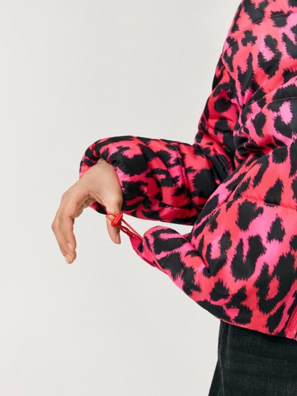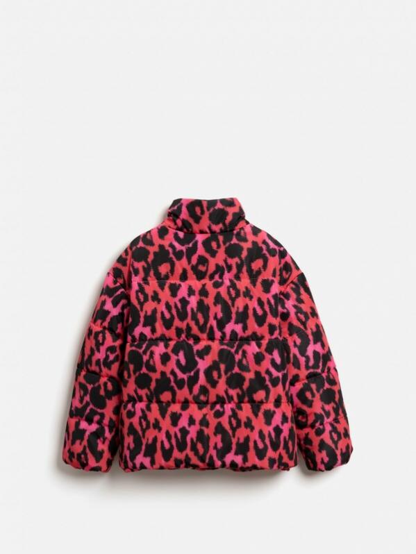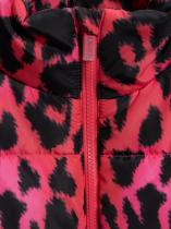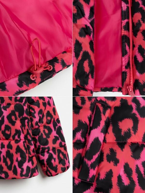Утеплённая стеганая куртка с леопардовым принтом для девочки изготовлена из ткани с водоотталкивающей пропиткой, которой не страшны мелкий дождь, туман и влажность. Модель утеплена синтепоном весом 200г-м2 (от 140 размера и более +15г на каждый размер). Рекомендованный температурный режим от +10 до -10 градусов. Подкладка выполнена из стандартной подкладочной ткани. Спереди расположена застёжка на молнию с внутренней ветрозащитной планкой и защитой от защемления подбородка. Воротник-стойка закрывает горло и избавляет от необходимости носить шарф. Спереди расположены два удобных кармана в листочку, позволяющих держать под рукой важные мелочи. Изнутри по низу куртки расположена регулируемая утяжка для предотвращения продувания. Низ рукава на резинке обеспечивает плотное прилегание и сохранение тепла. Яркий розовый цвет дополнен ультрамодным леопардовым принтом.