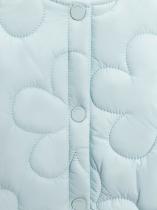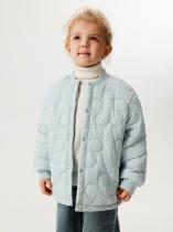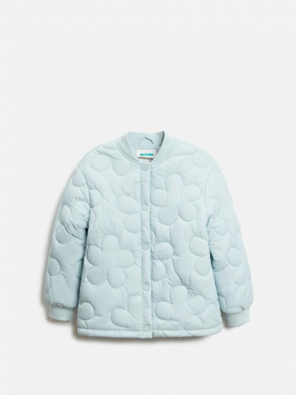 Утепленная стеганая куртка-бомбер для девочки изготовлена из ткани с водоотталкивающей пропиткой, которой не страшны мелкий дождь, туман и сырость. Ткань верха простегана с утеплителем декоративной стёжкой в виде цветочков, что придает модели визуального интереса. Утеплитель - синтепон (вес 180гр-м2 и +15 гр на каждый размер). Рекомендованный температурный режим от 0 до +15 градусов. Куртка с центральной застежкой на кнопки делает одевание быстрым и легким. В боковых швах расположены два кармана, в которых удобно хранить полезные мелочи и греть руки. Низ рукавов с трикотажными манжетами для лучшего прилегания к телу и сохранения тепла. Из этого же трикотажного полотна выполнен воротник бомбера.