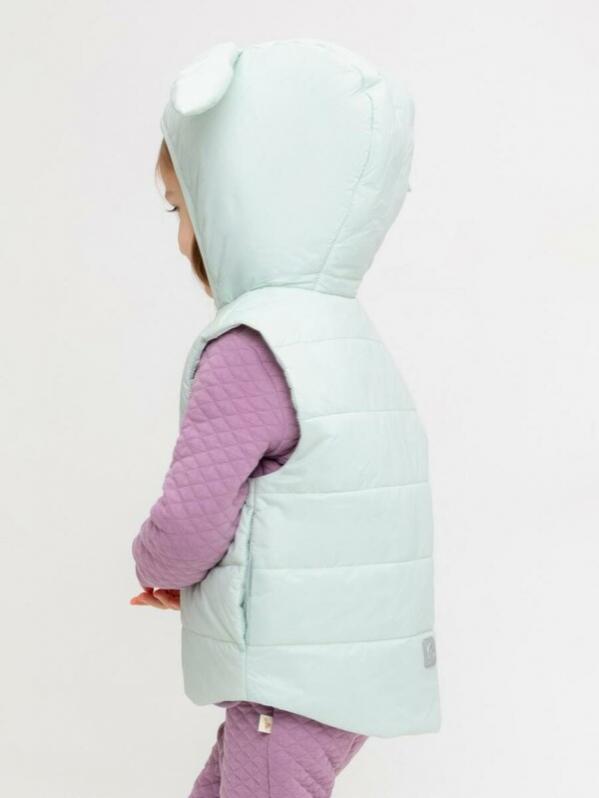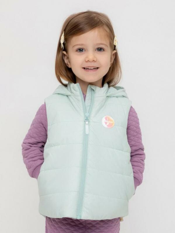 Стеганый жилет с капюшоном для девочки с утеплителем Fellex®: 120 г-м2. Выполнен из мембранной ткани с дополнительной тефлоновой обработкой. Данный вид обработки предохраняет изделие от загрязнения и лучше отводит влагу. Подклад: 60% хлопок и 40% полиэстер (на размерах 86-98), 100% полиэстер (на размерах 98-128). У изделия предусмотрена защита подбородка. По бокам два кармана. Во всех изделиях верхнего ассортимента для безопасности ребенка предусмотрены светоотражающие элементы.