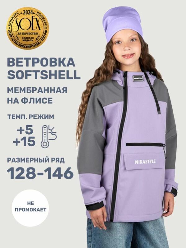 Ветровка для девочки СКАЙЛАЙН из Softshell идеально подходит активным детям на прогулках, которые много двигаются и не сидят на месте. Softshell это инновационный материал нового поколения, внешний слой которого защищает от влаги и ветра, внутренний слой из флиса сохраняет тепло и отводит лишнюю влагу, а промежуточный мембранный слой имеет хорошую паропроницаемость и позволяет коже дышать. Softshell приятный на ощупь, легкий и эластичный материал, не сковывающий движения ребенка.Функционал: - смещенная центральная застежка с влагоотталкивающей молнией и дополнительная боковая молния,- ветрозащитная планка, - центральный карман на молнии и нижний карман в левом боковом шве на кнопке, - капюшон с кулисой для регулировки объема. Мы все продумали до мелочей, поэтому модель оснащена кулисой по низу для регулировки объема изделия и манжетами на резинке с дополнительной регулировкой для защиты от проникновения холодного ветра.Когда носить? Весной и осенью с теплой поддевой, а также прохладным летом.Температурный ре