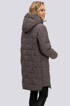 Умеренный объем изделия, прямой силуэт идеально подходит для создания уютного образа, который при этом будет выглядеть стильно и элегантно. Втачной покрой рукава идеален для любой фигуры, придает стройность и строгость образу. Капюшон – удобная и актуальная деталь верхней одежды, защитит от ветра и холода. Рукав отгибается на манжет. В изделии 4 действующих кармана. Новый вид стежки несомненно приковывает взгляды окружающих. Нам удалось продлить сезон носки изделия, за счет внедрения в производство нового вида стеганой ткани. Ткань верха плотная и многослойная. Утеплитель термофин, плотность 150. Температурный режим до -5.