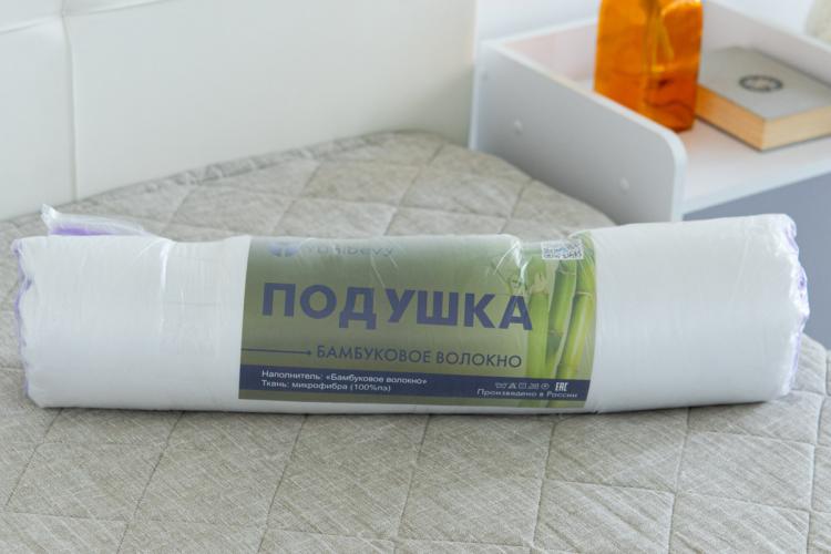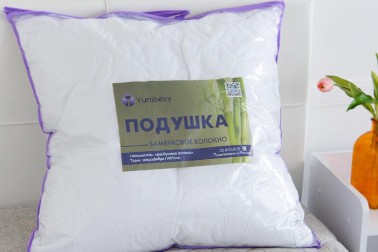 Подушка "Юнибив" бамбук+леб. пух на молнии стеганая м/ф(белая) 550гр, сумка