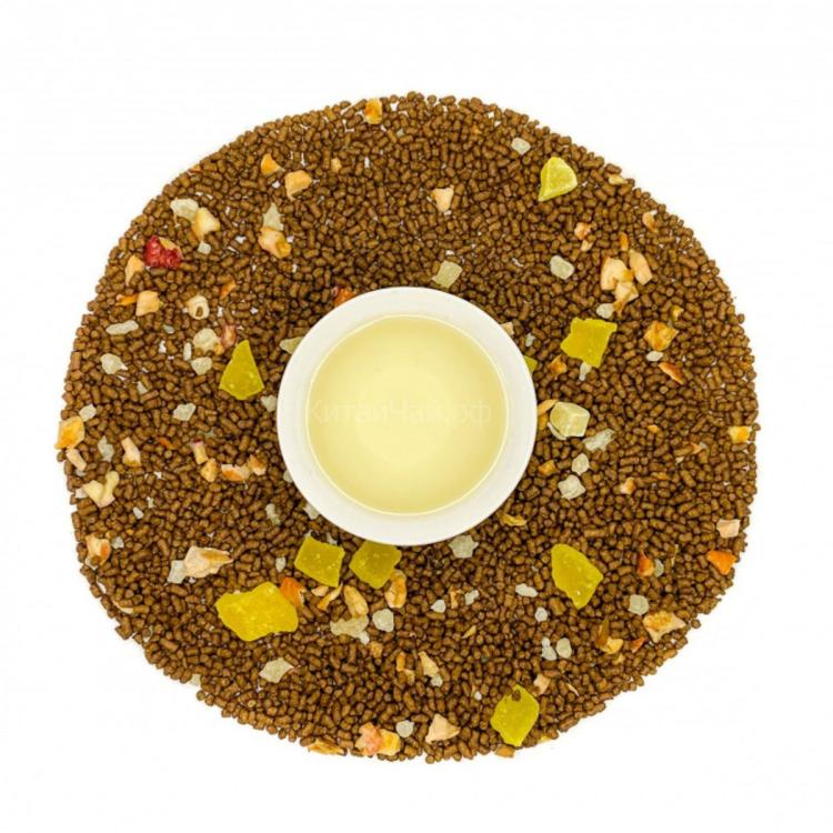 Гречишный чай, цукаты дыни и ананаса, кусочки сушеного яблока, аромат манго.