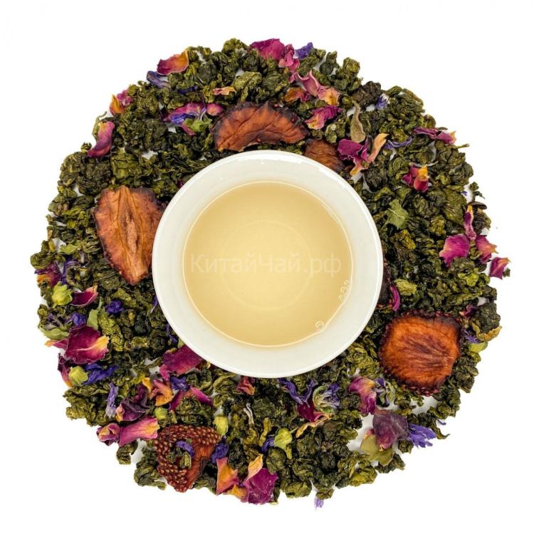 Китайский улун Те Гуань Инь, лепестки розы, кусочки клубники, лепестки василька.